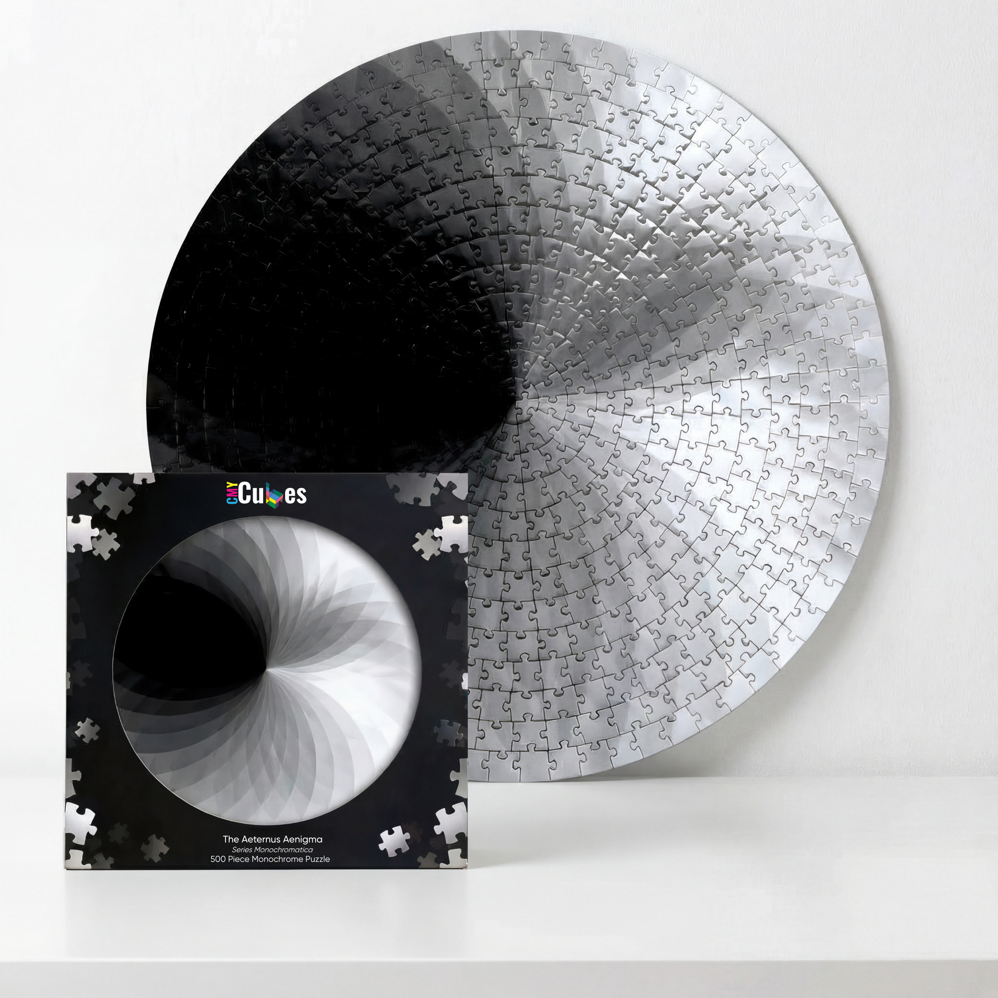 With colour stripped away, progress depends on form, alignment, and visual logic alone. Each rotation reveals a new monochrome perspective across all 500 pieces, forcing you to rethink what you see and how the puzzle fits together. Intricate, challenging, and deeply satisfying, the Aeternus Aenigma Series Monochromatica is designed to perplex and entertain puzzlers of all ages.